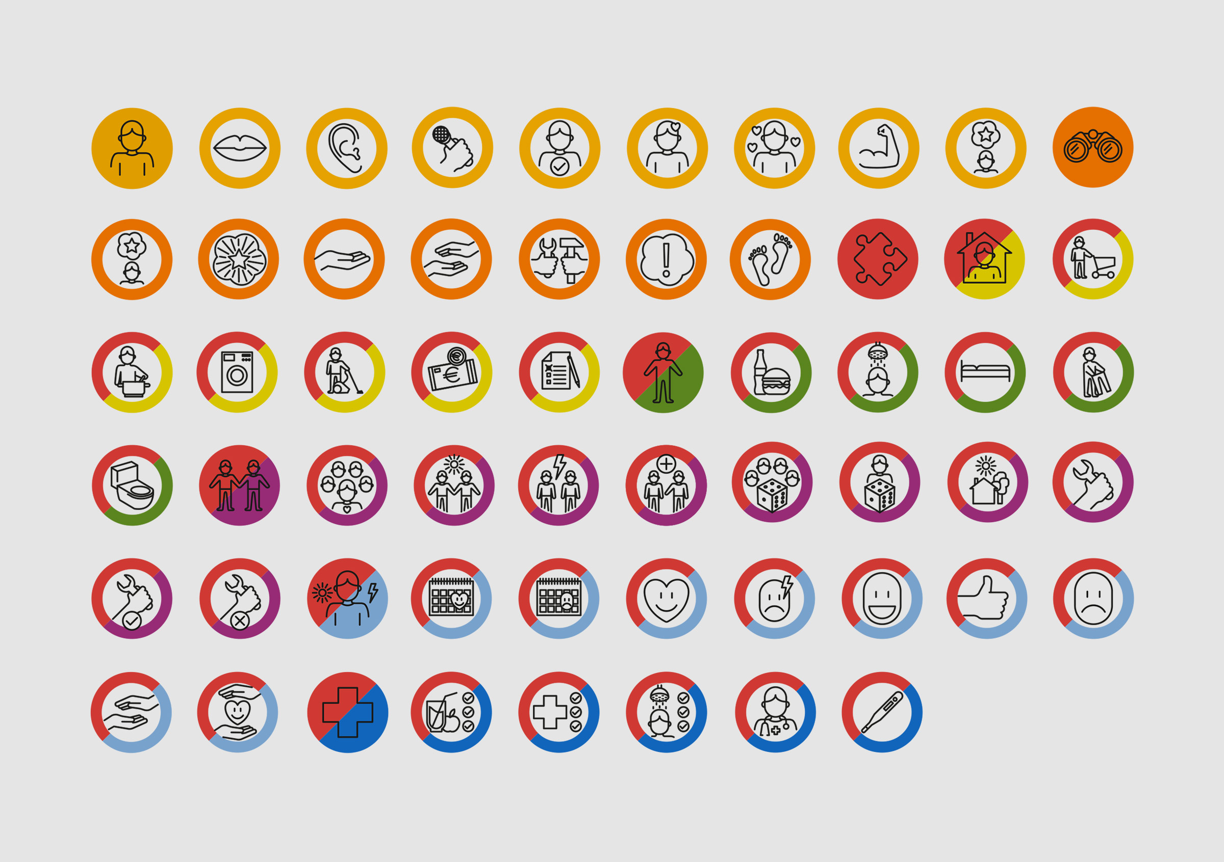 Die Auftakt GmbH ist eine gemeinnützige Gesellschaft welche Wohngemeinschaften, betreutes Wohnen und eine ambulante Lebensbegleitung für Menschen mit Behinderung anbietet.Für die jährliche Perspektivenplanung der Bewohner:innen durften wir ein Icon-Set erarbeiten, welches den Betroffenen die Navigation durch den Prozess erleichtert.