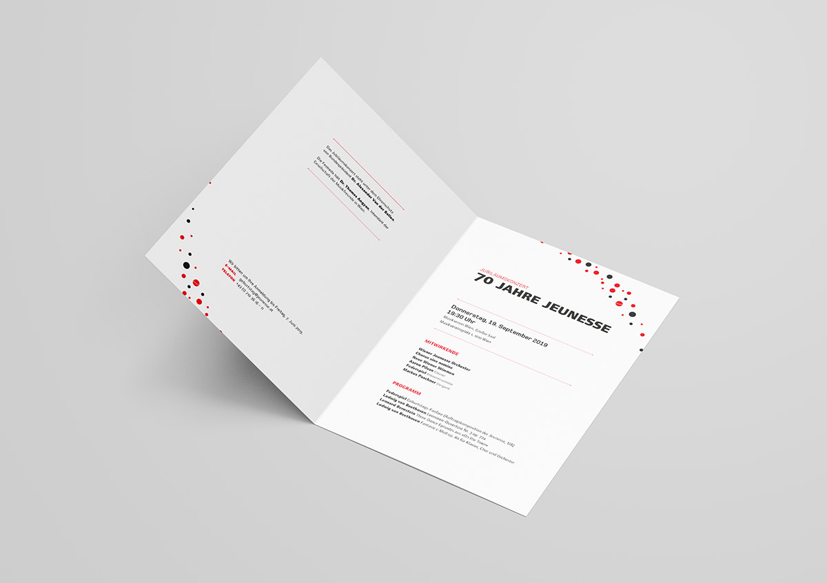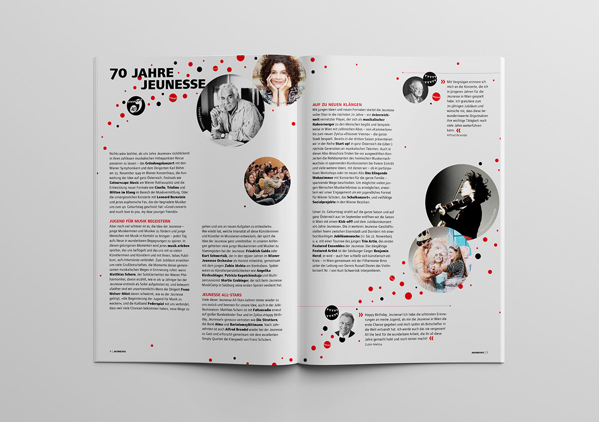 Für das 70-Jahr-Jubiläum des Konzertveranstalters Jeunesse – Musikalische Jugend Österreichs haben wir ein eigenes Erscheinungsbild entwickelt, das mit vielen kleinen Elementen, die spielerisch zusammengesetzt und frei verwendet werden können, die inhaltliche Idee der Jeunesse transportiert.