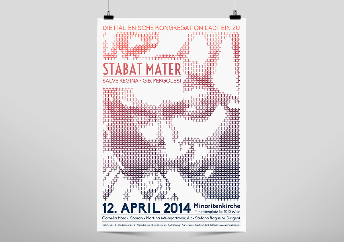 Konzertplakat zur Aufführung des Stabat Mater von Pergolesi.